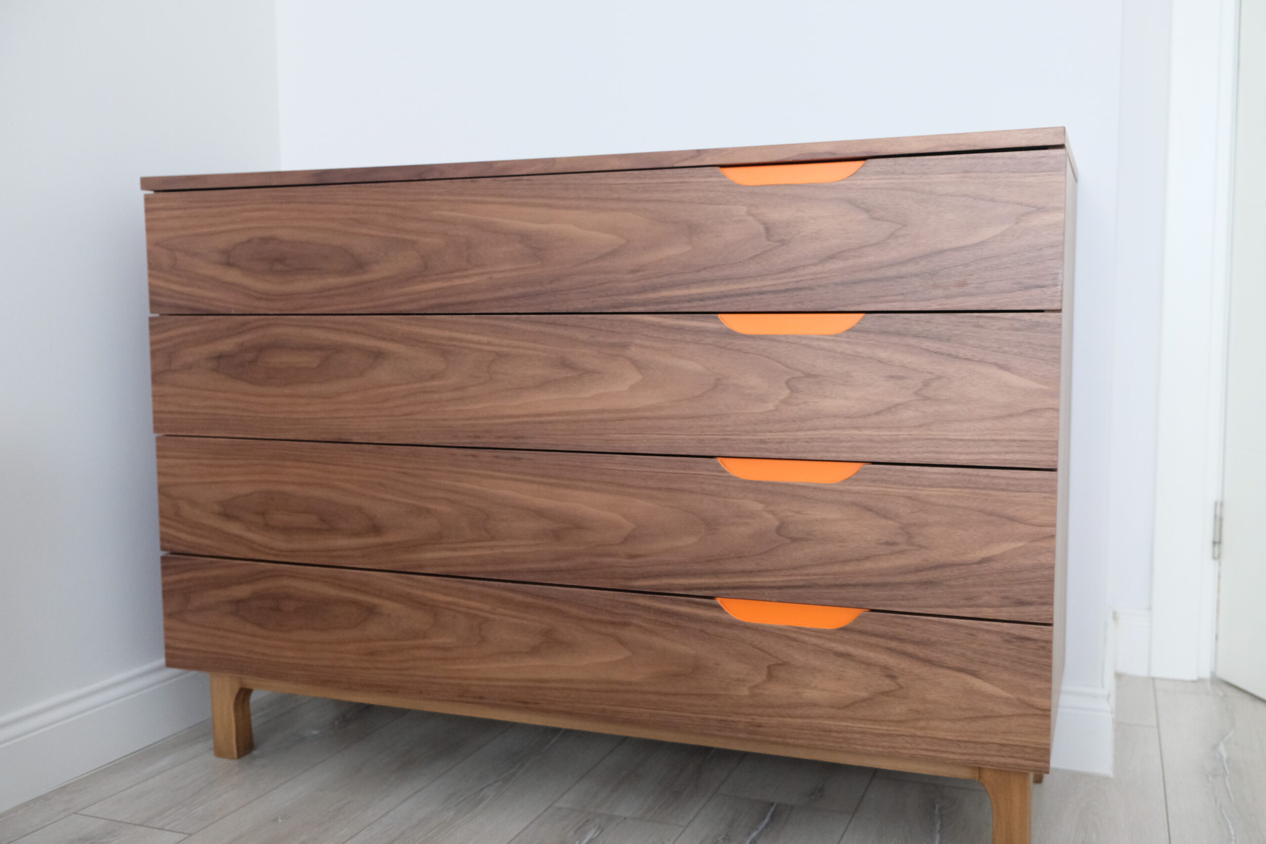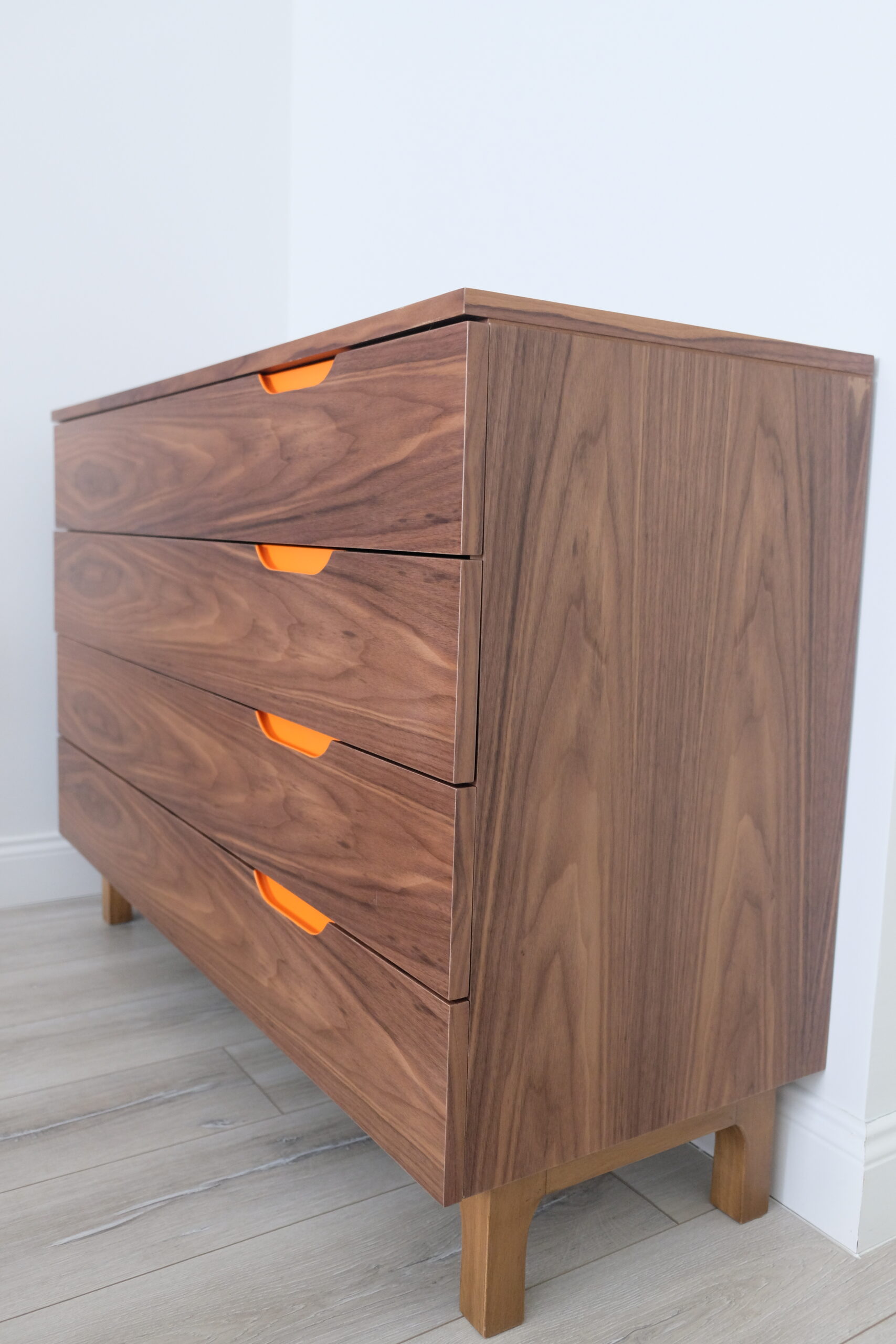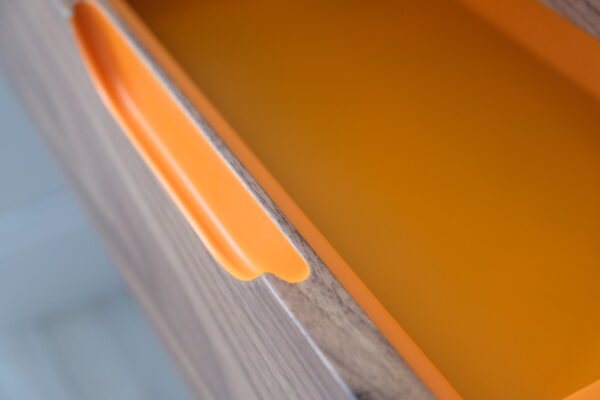 La commode Greta fera la différence par son design moderne et se démarquera dans votre pièce. Les petites touches de couleurs dans les tiroirs détermineront les nuances de couleurs de votre pièce. Ce produit recouvert de noyer est à la fois élégant et intemporel.
