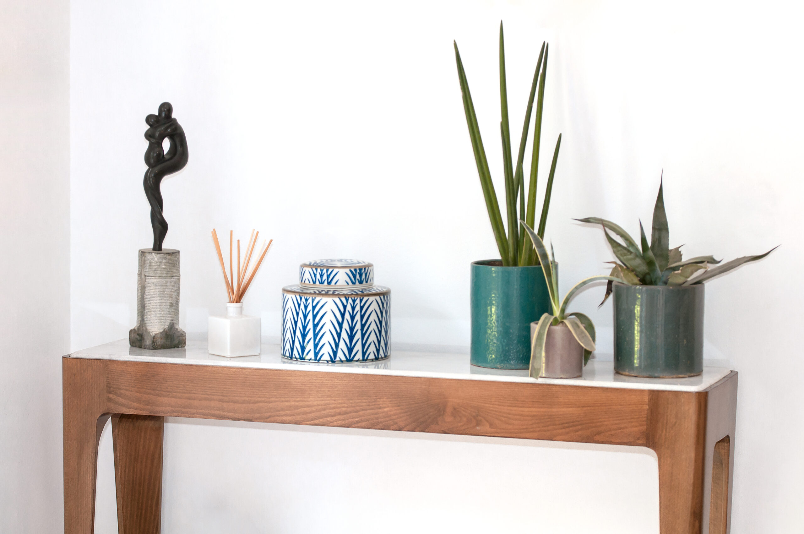 Avec son design simple et intemporel, la console Emily apportera de l’élégance dans votre intérieur. Son plateau est en marbre blanc de carrare, et son cadre est en hêtre massif et placage noyer. Cette console produira la différence dans chaque espace avec ses courbes élégantes.
